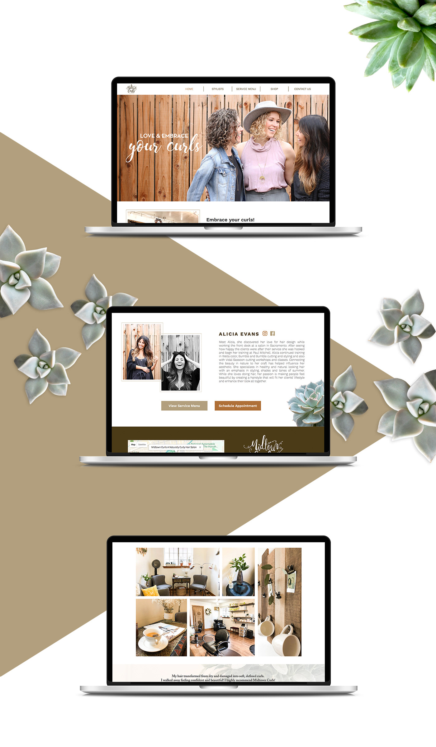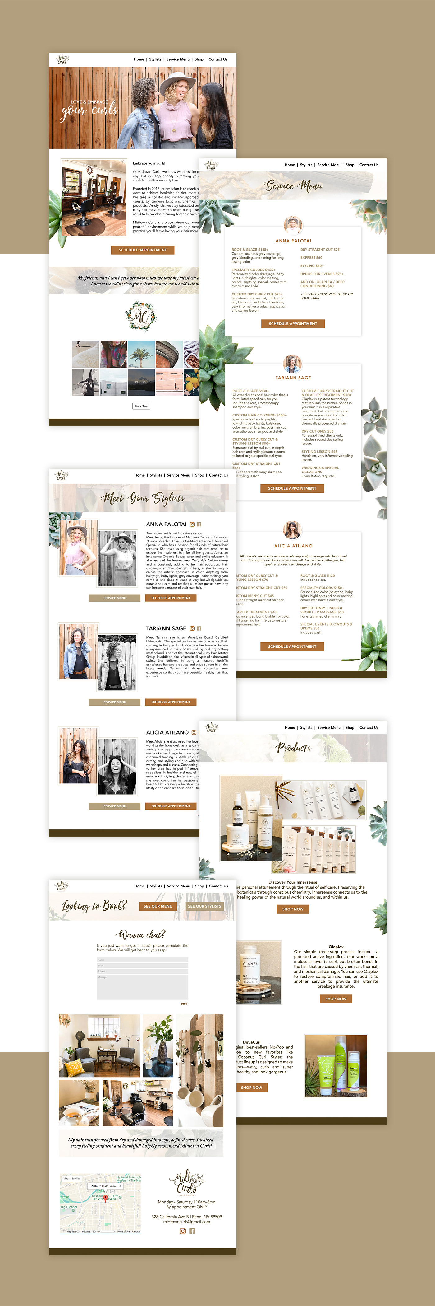 Midtown Curls is a local hair salon specializing in naturally curly hair. The brand is very tied to natural, organic look by using greens and earthy colors.