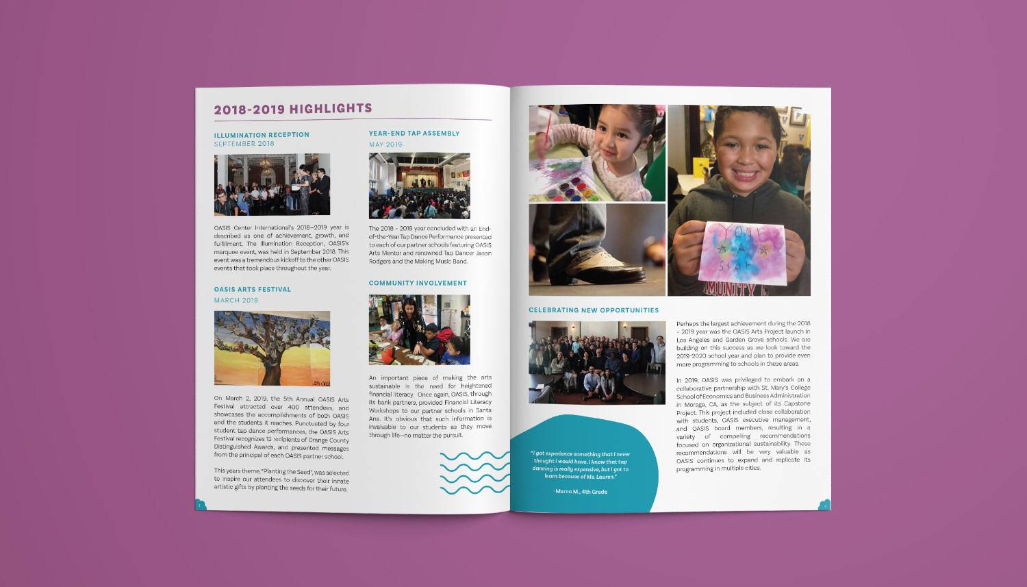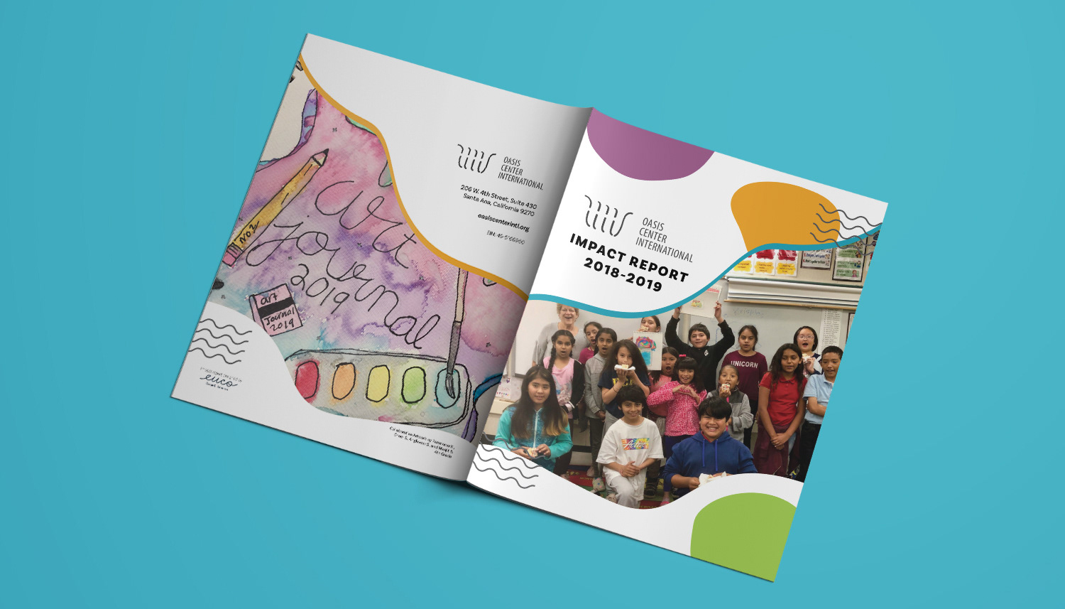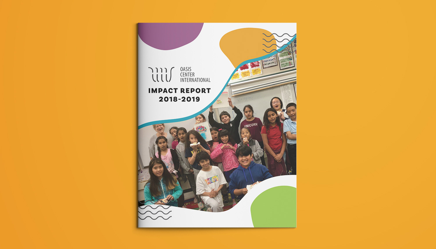 Impact report design for OASIS. Design inspired by playful and color children's illustration.
