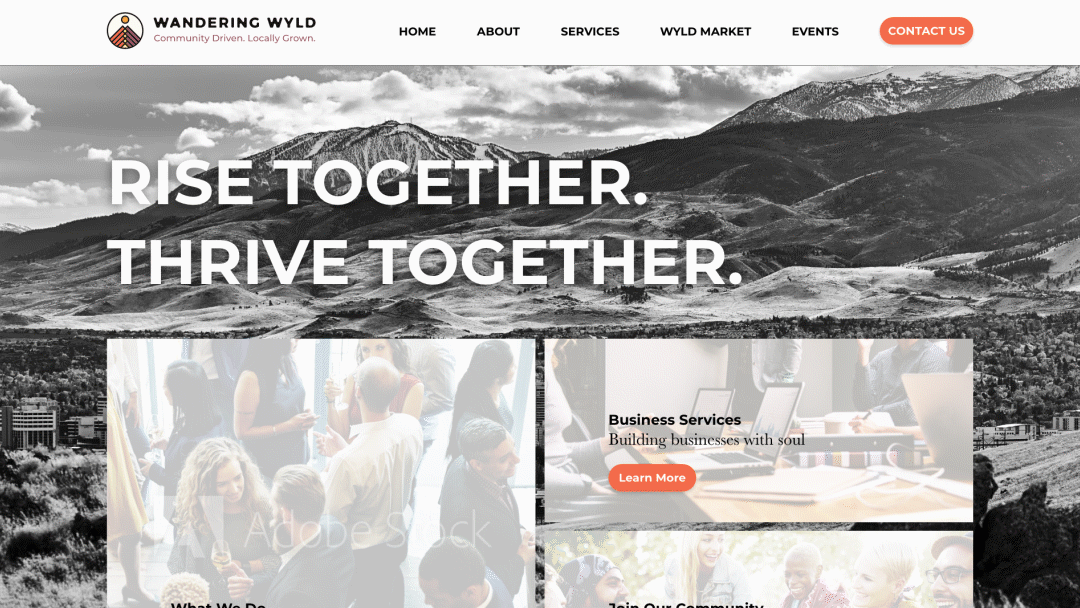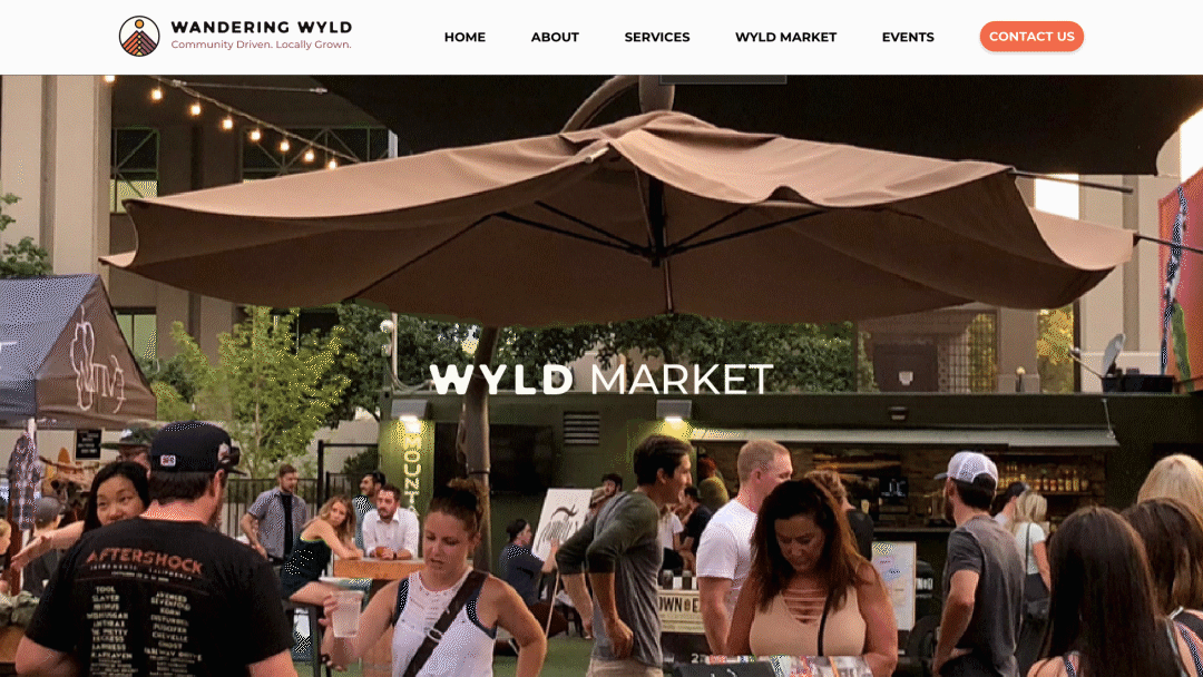 Simple wireframe design for Wandering Wyld, a community event and marketing organization.